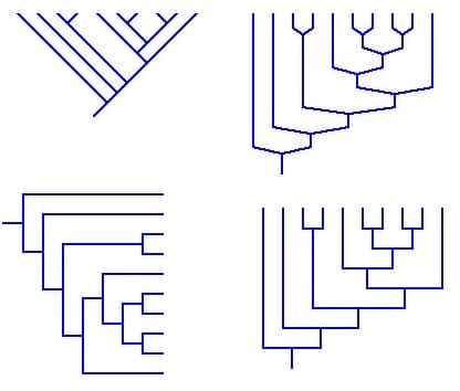 represent hypotheses about the evolutionary relationships (the descendance) among a group of organisms, originating from a common ancestor and can be built using morphological (body shape), biochemical, behavioural, or molecular characteristics of species or other groups. Dendrograms are often used to illustrate such evolutionary relationships, along with information like evolutionary time line separating the taxa (like, how many million year ago did this species come into being), genetic distance (between the gene sequences being classified), and so on.