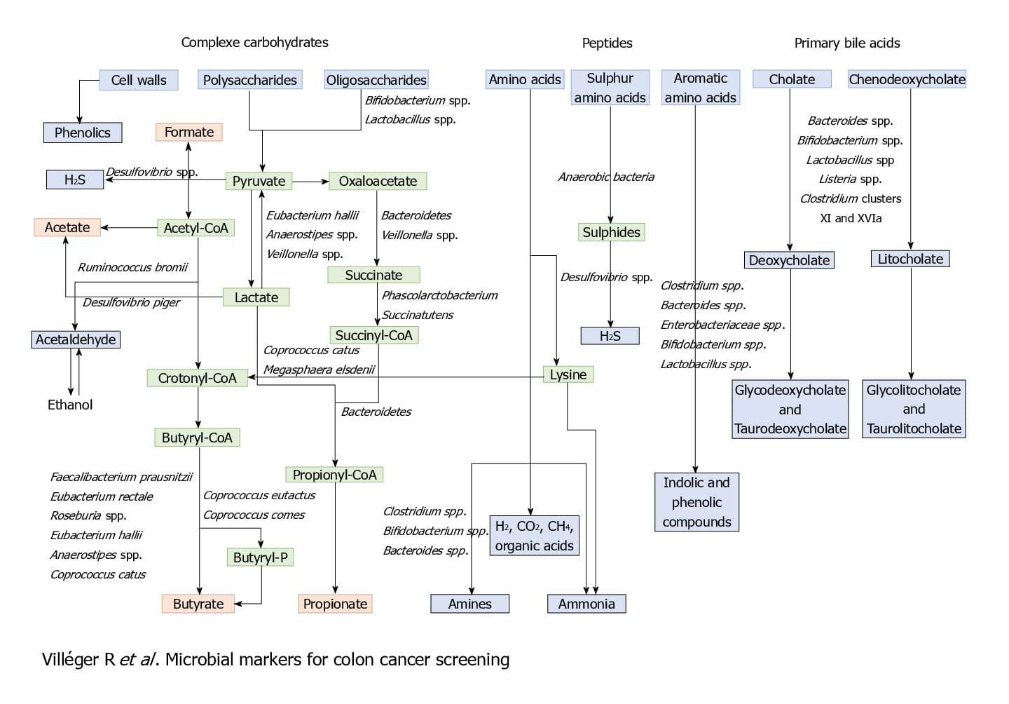 Other than these bacterial markers and associations, some metabolites can also be and have been used as diagnostic and prognostic markers, for its association with CRC.