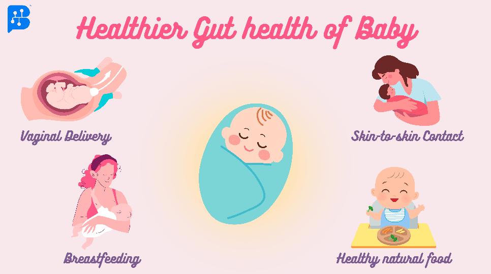 The newborn baby is completely sterile when entering this world. So the first exposure to bacteria is during birth through the vagina. Breastfeeding and skin-to-skin contact, which involve a lot of hugs and kisses for the baby, help introduce mature microbiota. After some time, enhance the baby's diet with a probiotic-rich natural diet.