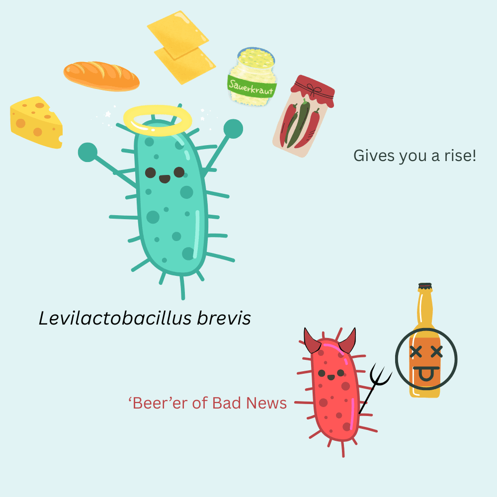 Besides beer spoilage, Levilactobacillus brevis is also associated with the spoilage of wine. The presence of this microbe in excess can also cause spoilage in juices, salad dressings or even cheeses, leading to unfavourable textures, appearance, and smell.