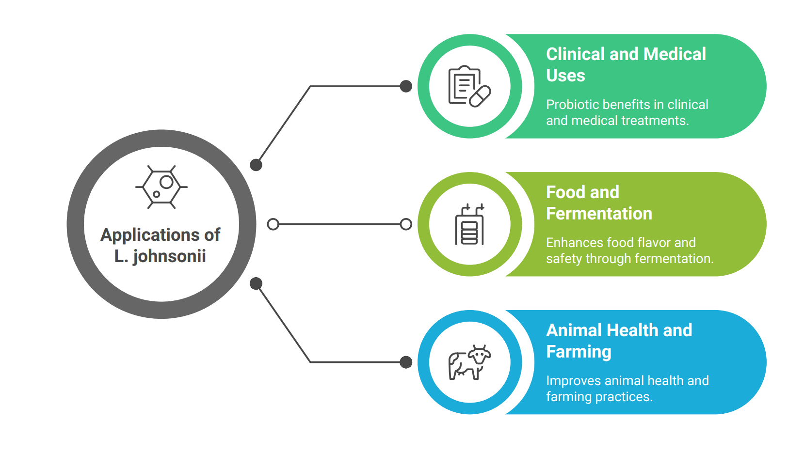 This wide presence shows that L. johnsonii isn’t a wanderer in the wild but a microbe that prefers the nutrient-rich comfort of host environments. Over time, it has co-evolved with its animal partners, with certain strains uniquely tuned to thrive in particular species. It also finds its way into human life through fermented foods and probiotics, where it’s used to enhance gut health or improve fermentation in animal feed. In short, L. johnsonii has carved out a lifestyle that’s tightly linked to both animals and humans, a versatile microbe with a knack for building long-term relationships.