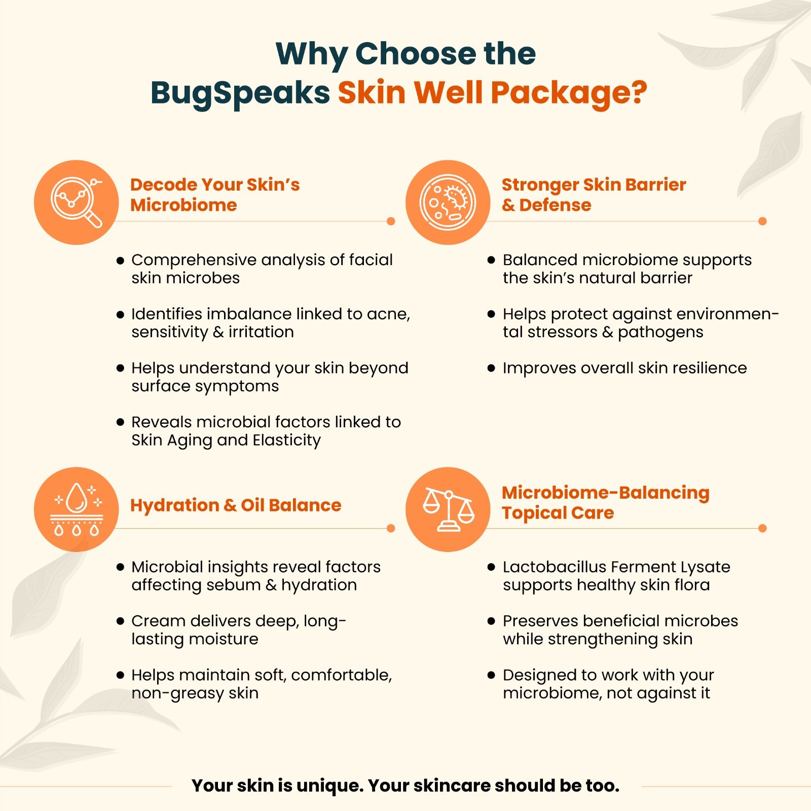 Transform your skin health with our comprehensive Skin Well Package. This bundle includes our Premier Skin Microbiome Test along with Microbiome Balance Cream. Get personalized insights into your skin microbiome and support your journey to healthy, radiant skin with our science-backed microbiome-balancing cream.