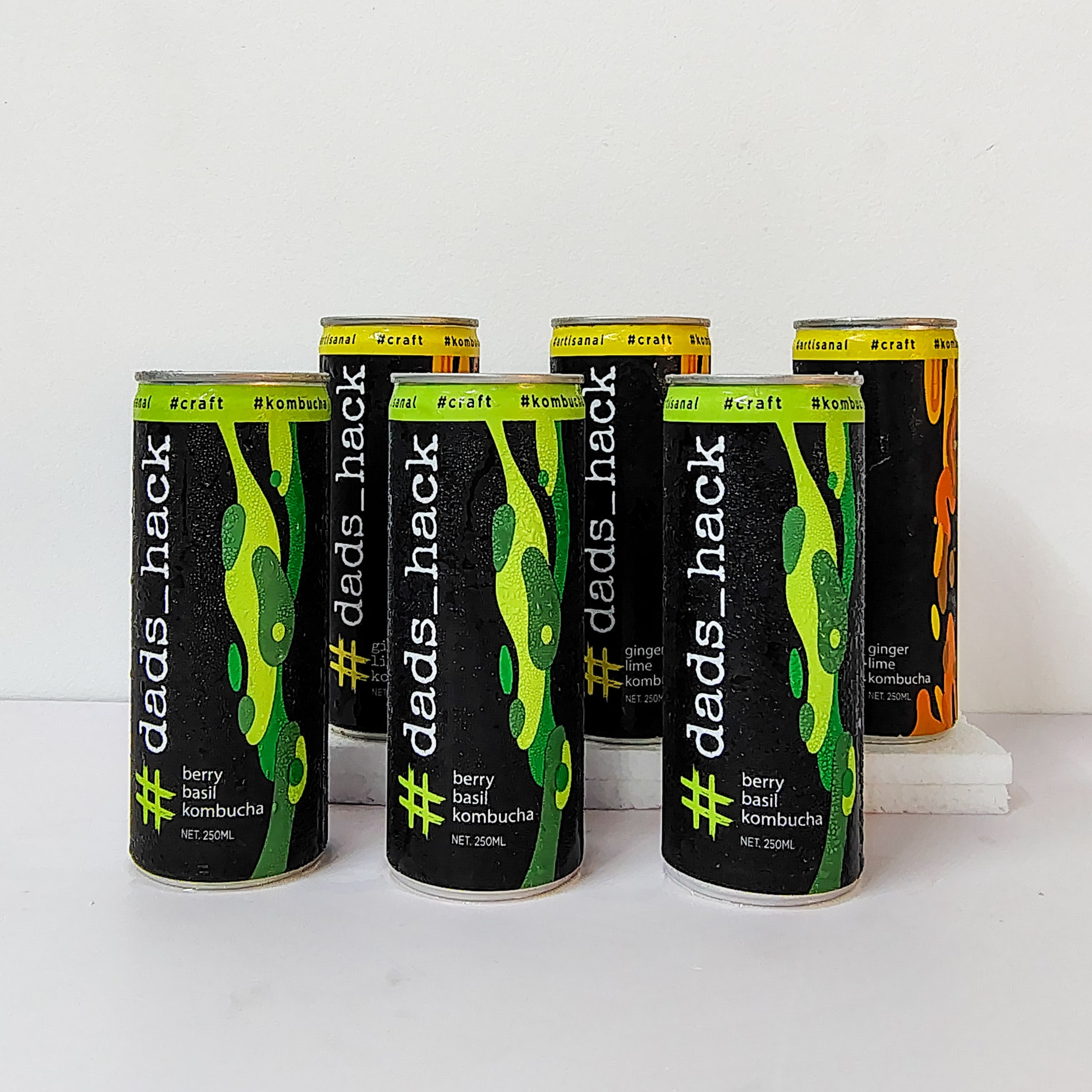 Enjoy Pack of 6 kombucha cans including 2 of our handcrafted popular flavours i.e. three each of Berry Basil & Ginger Lime. Experience kombucha bliss with every sip!