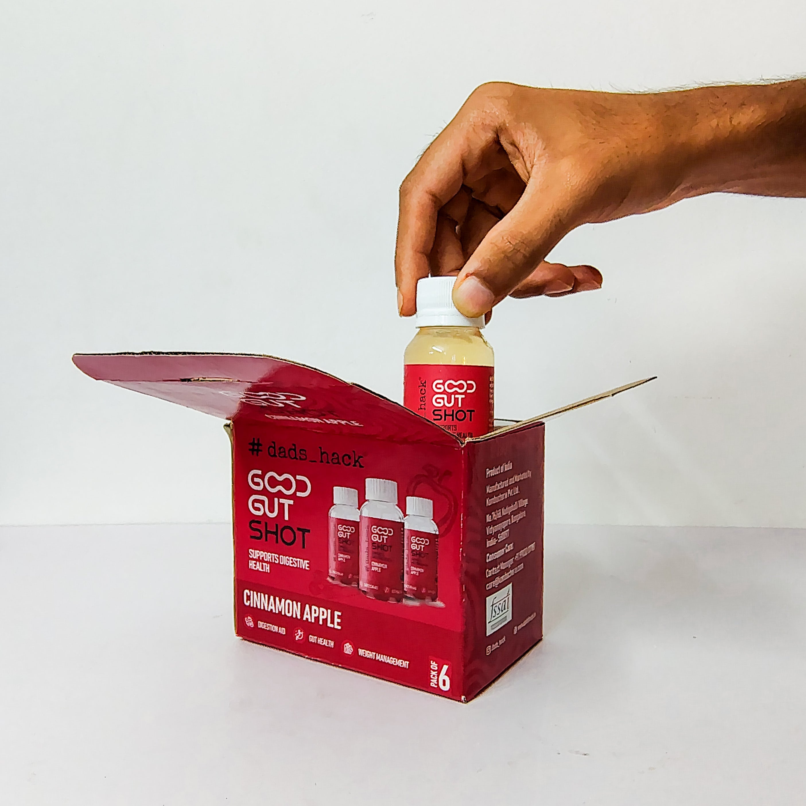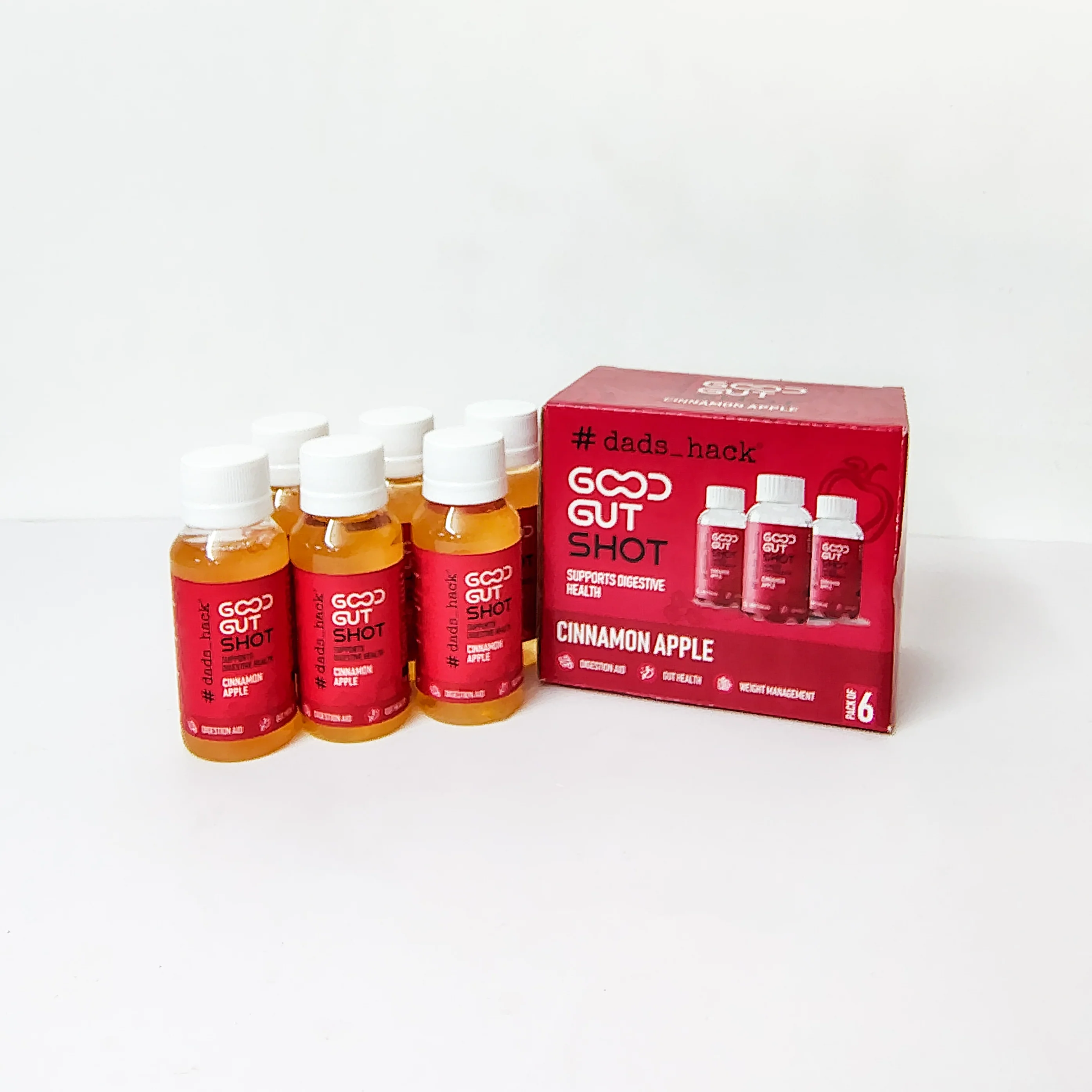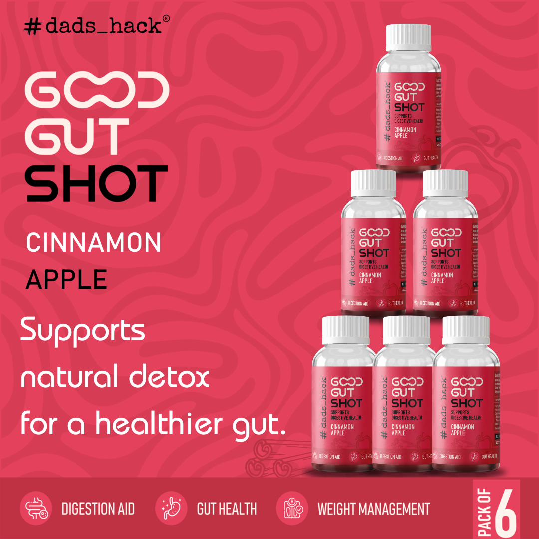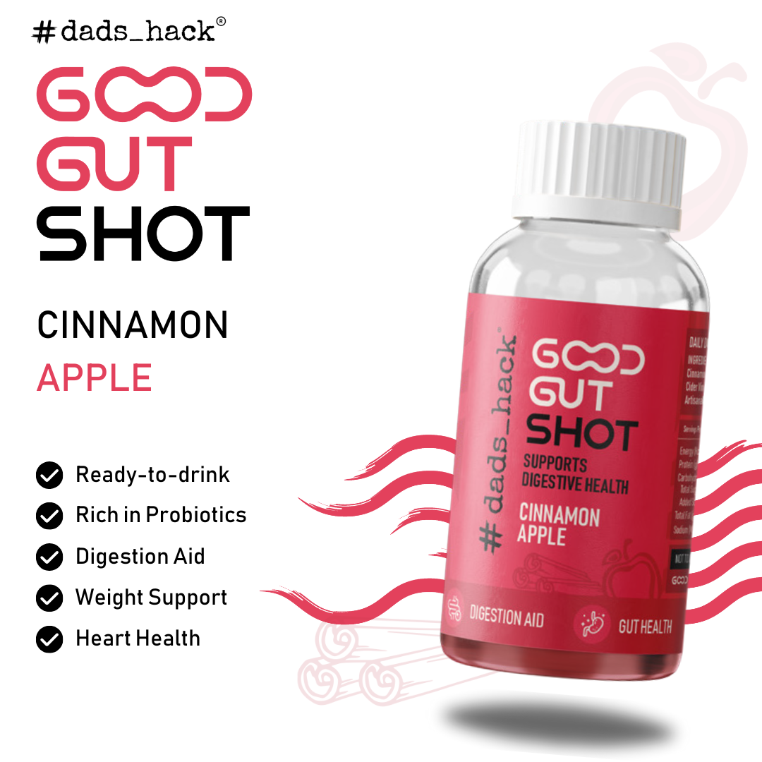 Dad’s Hack Good Gut Shots are flavoured one a day wellness shot of Kombucha and Apple Cider Vinegar that is rich in probiotics, aids digestion and weight management. Our Cinnamon Apple shot helps to regulate blood sugar, improves metabolism rate and heart health.