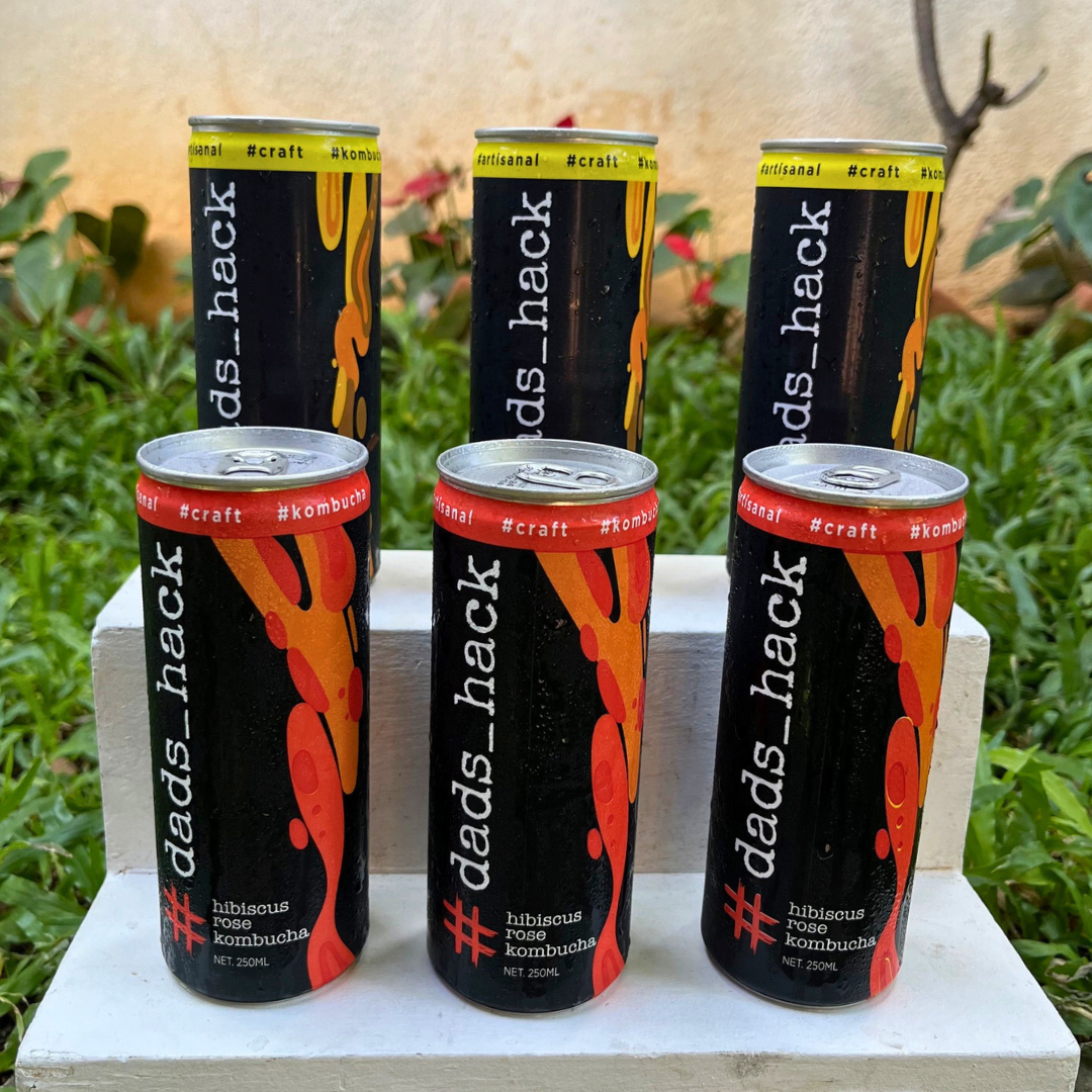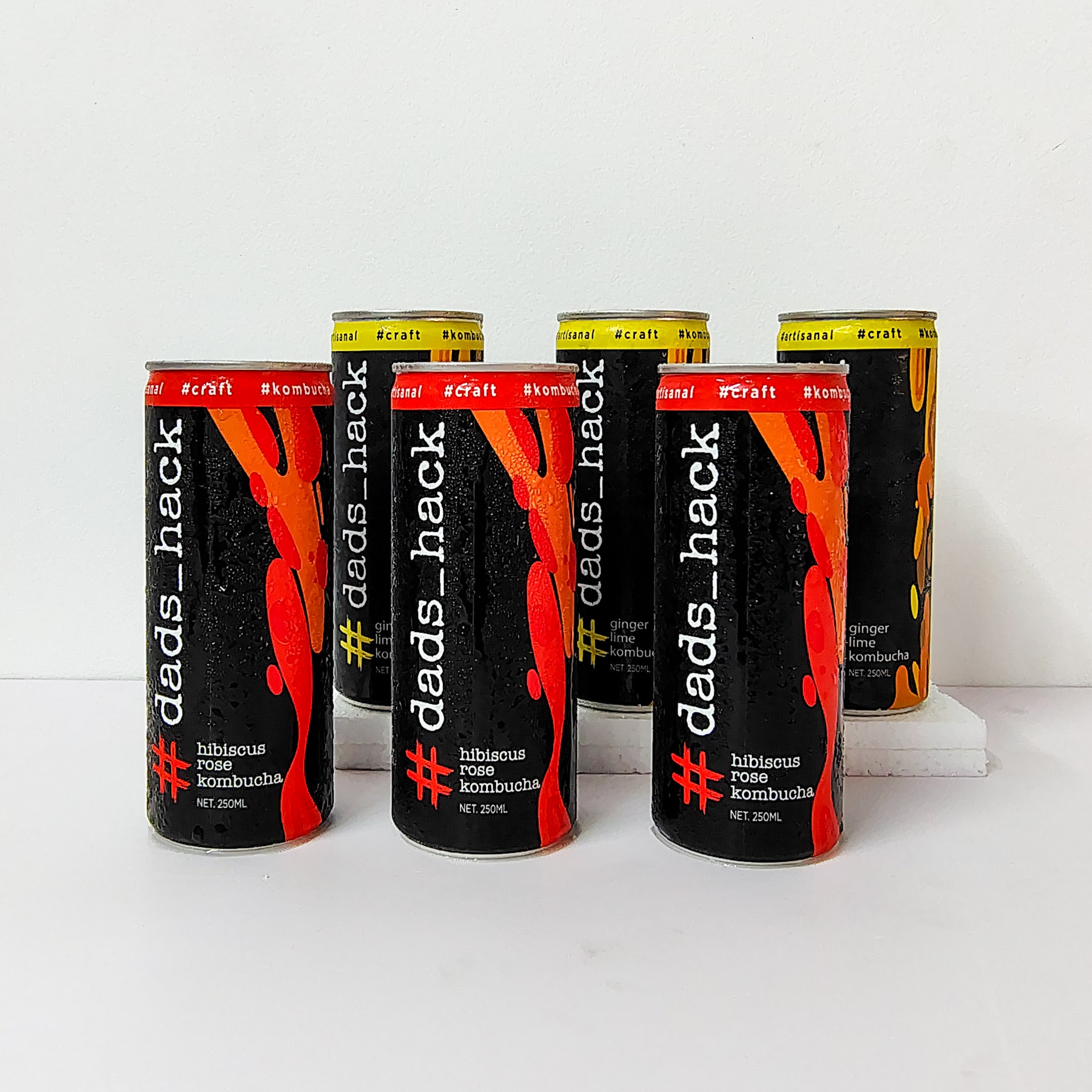 Pack of 6 cans covering 2 of our hand crafted popular flavours i.e. Three each of Ginger Lime & Hibiscus Rose Kombucha. Experience kombucha bliss with every sip!