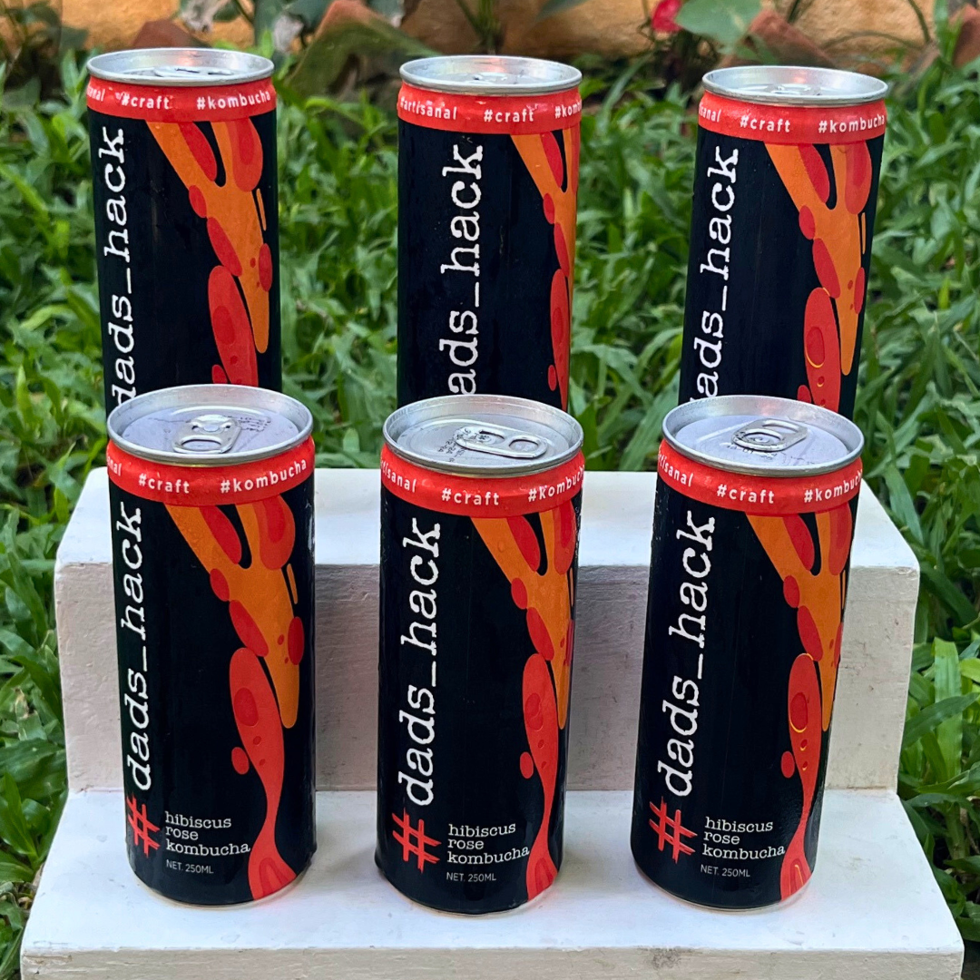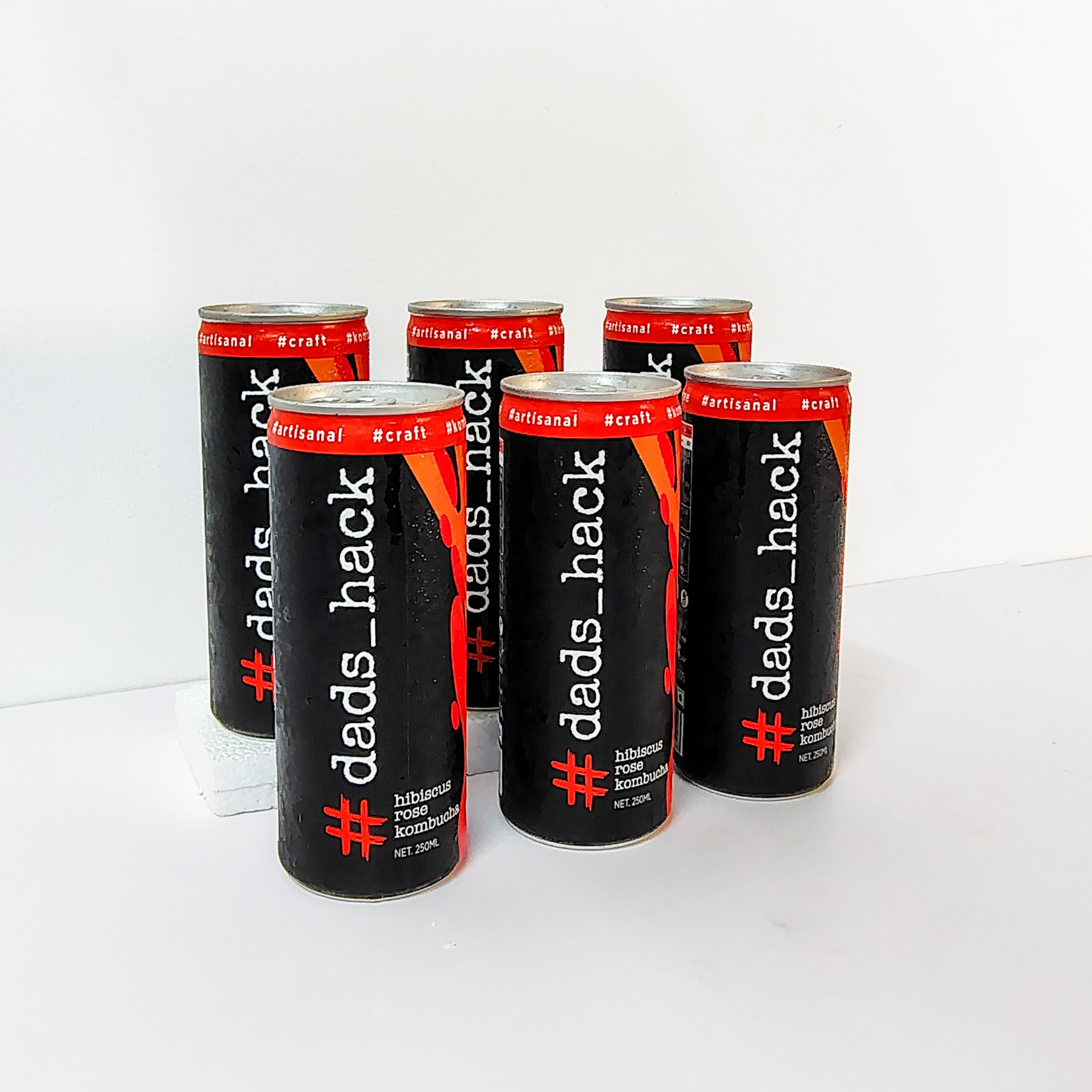 Pack of 6 cans of Hibiscus Rose Kombucha. Each can of Hibiscus Rose is a delicately balanced floral fusion of cholesterol busting hibiscus extracts & natural rose syrups that balance and elevate your mood.