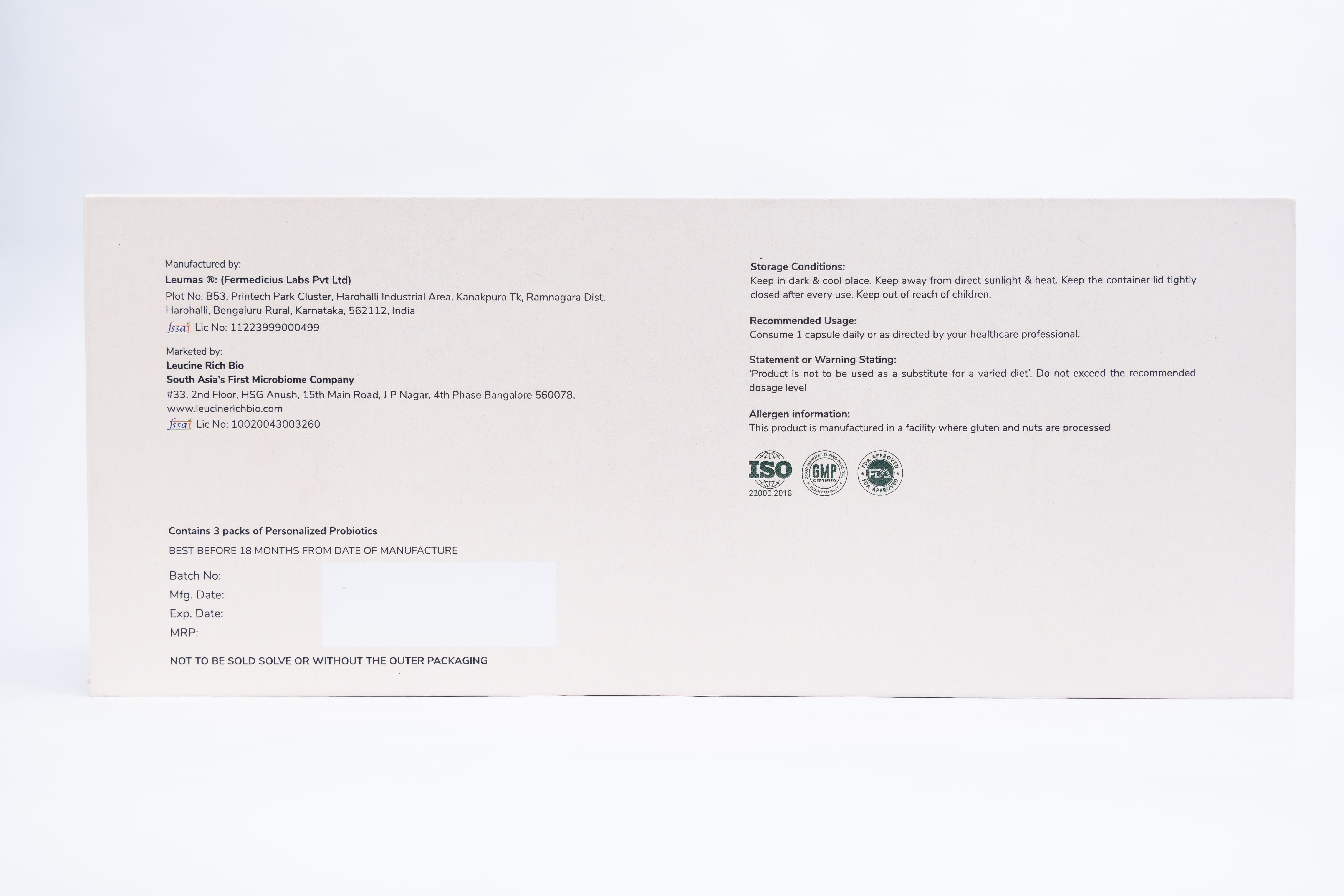 All RychBiome products and formulations have been developed with great care following global standards. We have strictly followed GMP and FSSAI manufacturing and safety guidelines. Further the RychBiome Indus is 100% natural and GMO free. Overall, the safety should of the product should be least of your worries.
